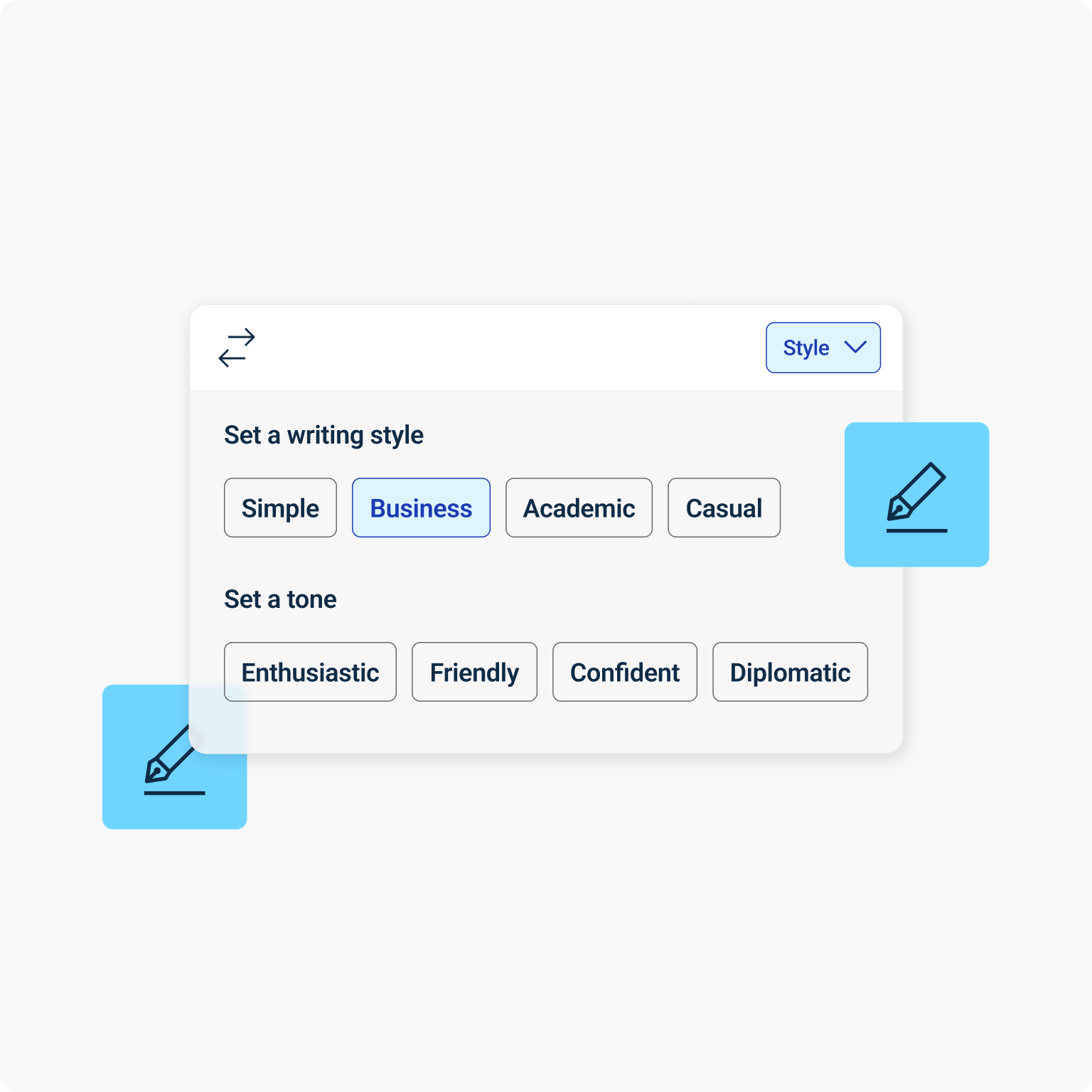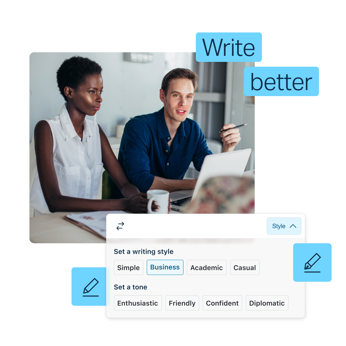 Help your team find the right words to intelligently express their ideas—clearly, concisely, and with the appropriate style and tone for any audience or context. Write Pro's adaptive AI enables your organization to always strike the right note.